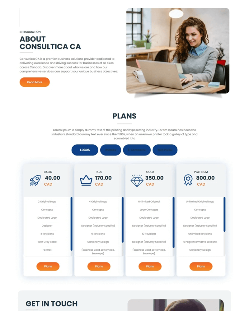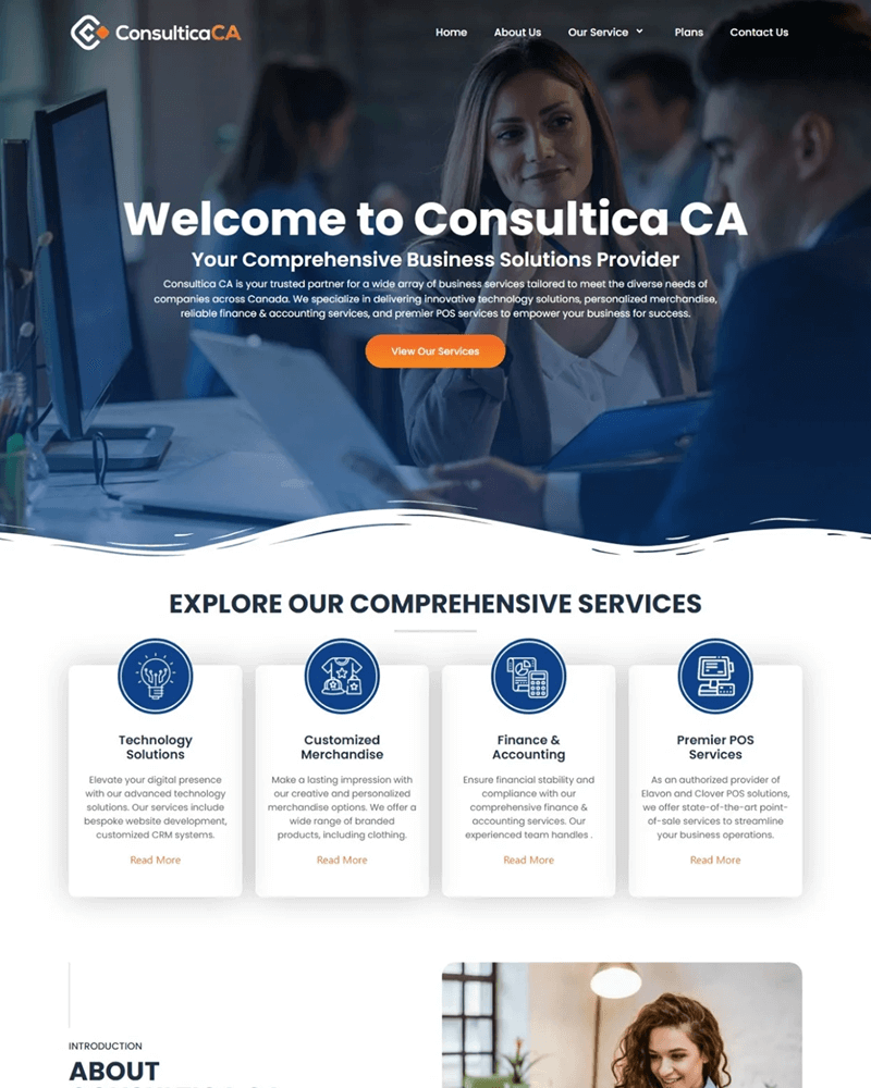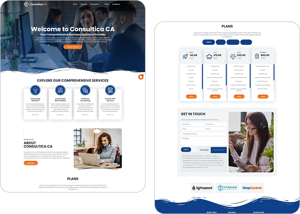 Consultica CA is a professional business solutions website built using WordPress. Designed for a Canadian firm, the site delivers a modern, responsive layout featuring smooth navigation, clean UI, and engaging visual sections. It includes service highlights, pricing plans, a detailed contact form, and partner brand integrations. The site effectively showcases the client’s offerings like technology solutions, customized merchandise, accounting services, and POS systems. It also incorporates a live chat widget and trust-building content like logos of partners and testimonials. The use of structured content blocks and visual balance ensures a user-friendly experience across all devices.