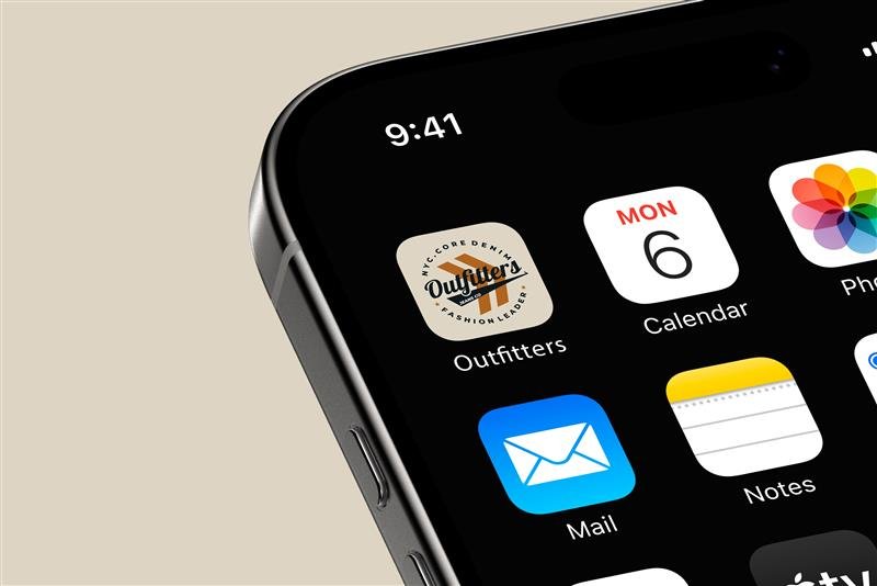A vintage-inspired logo showcasing the word “Outfitters” in a bold, stylized typeface arched across two parallel stripes, giving it a classic and rugged look. Above the main text sits “NYC.CORE DENIM” while below, the words “FASHION LEADER” are balanced by star icons on either side. The color palette includes rich tones of dark blue, beige, and brown, enhancing the timeless and authentic vibe of the design. The logo is presented alongside a lifestyle photo of a 35-year-old Middle Eastern man in casual fashion wearing a hat, adding personality and relatability. A denim tag mockup also features the logo attached to jeans, reinforcing its branding in a real-world setting and fashion-forward context.