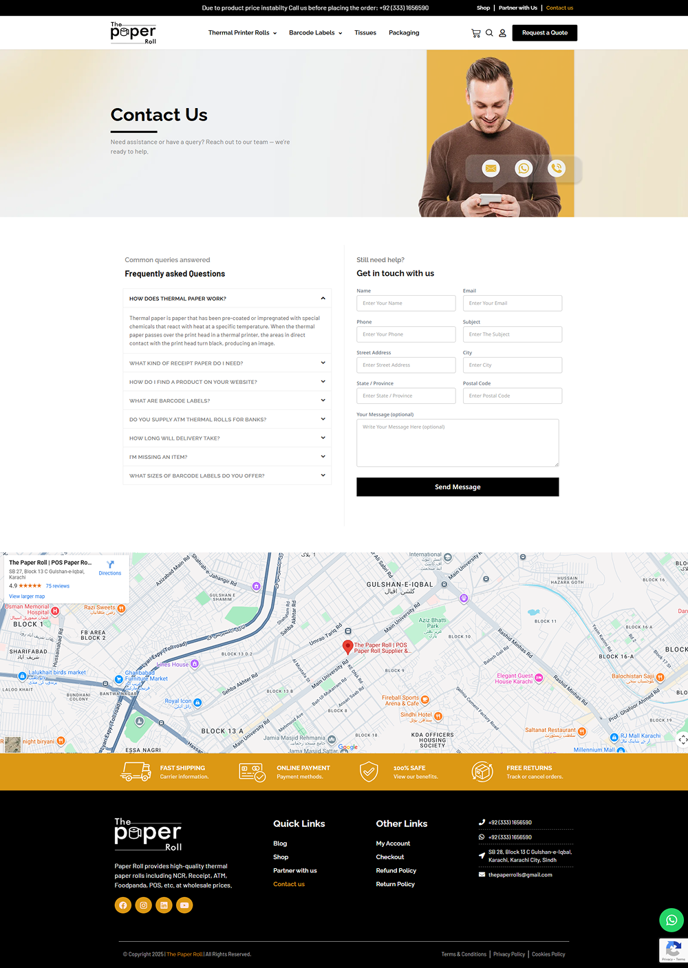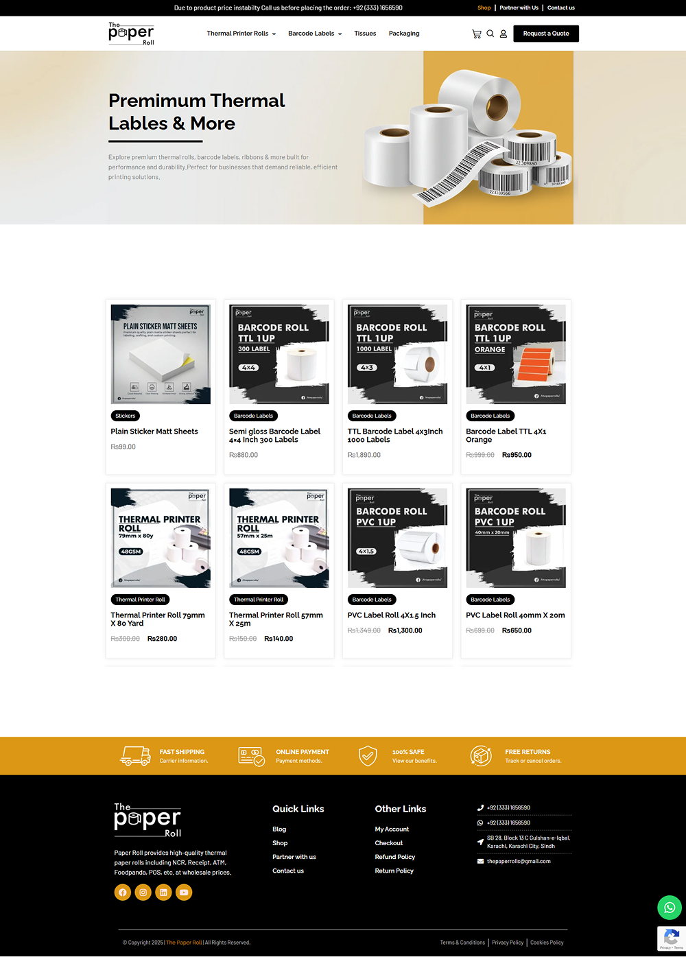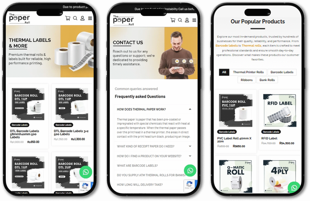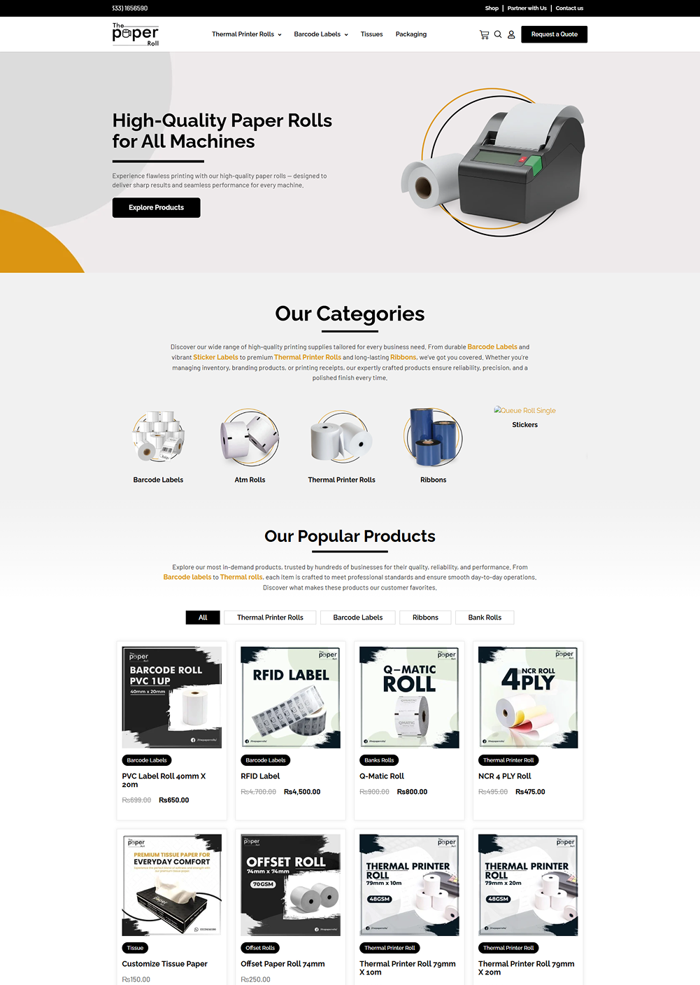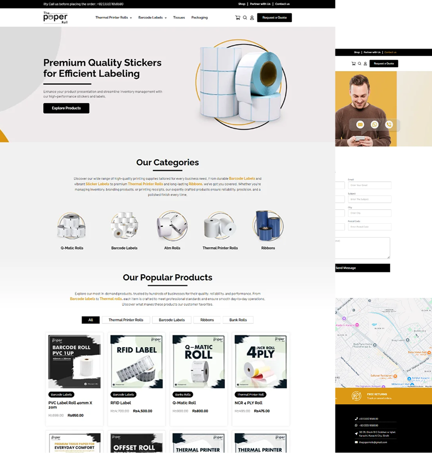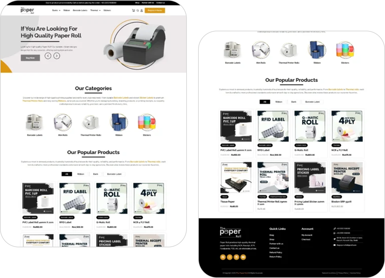 Customers can easily explore our wide range of paper rolls, thermal labels, barcode labels, and custom packaging solutions without compromising on speed or usability.